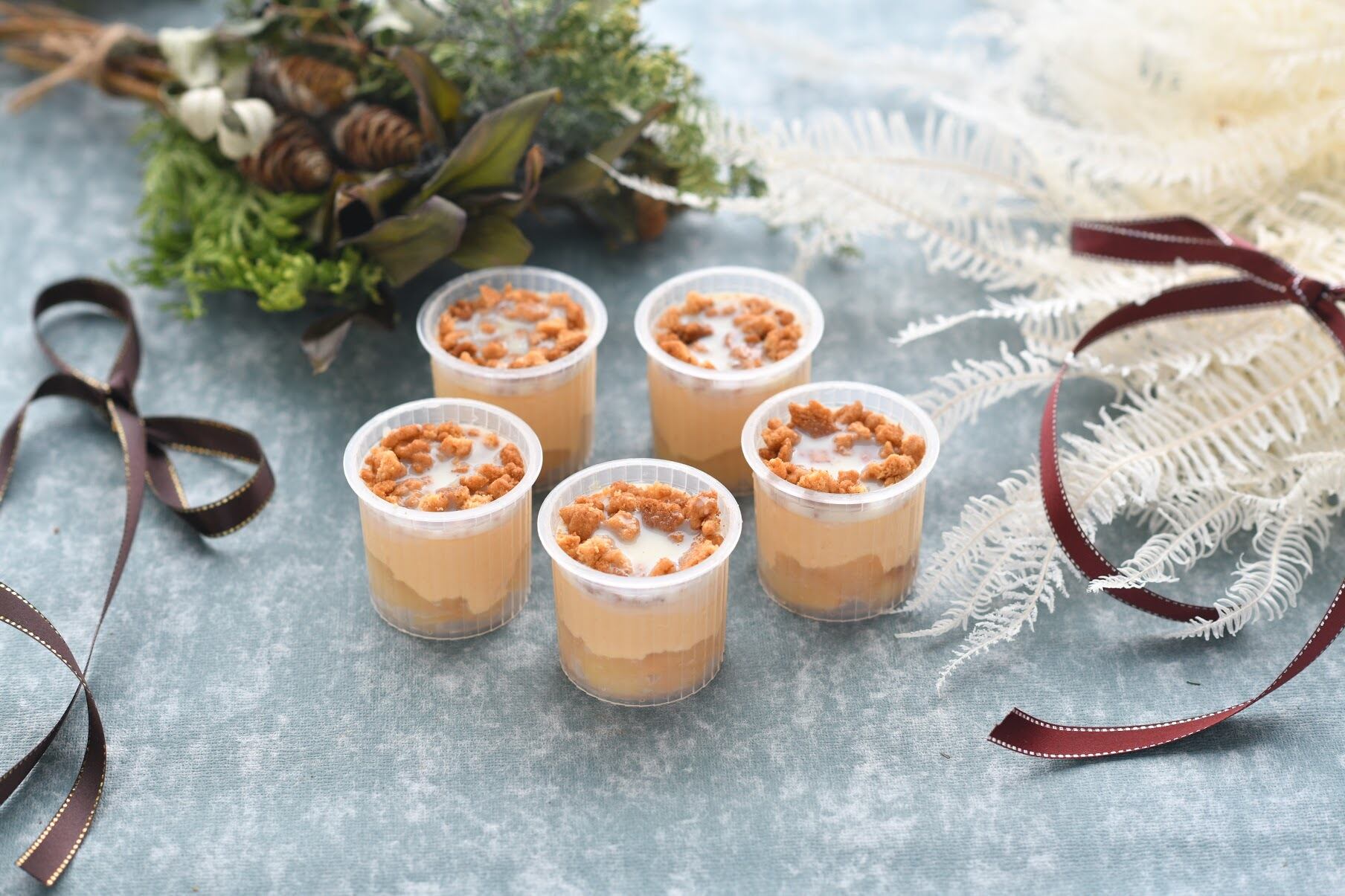 ・タタンプリン・・・青森県産りんごで作ったタルトタタン、濃厚でとろけるバニラプリン、クランブルのトッピング。異なる食感を楽しめる3層仕立てに。