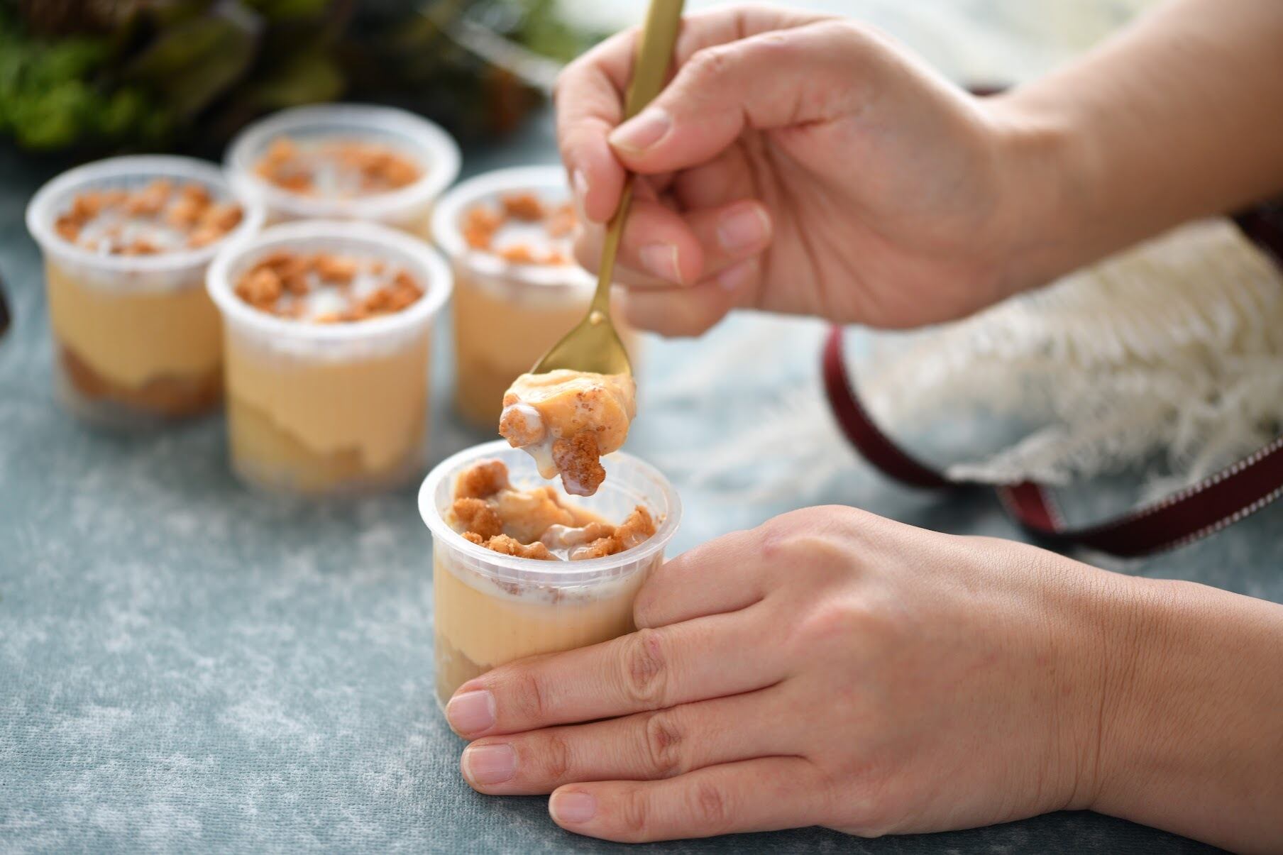異なる食感を楽しめる3層仕立ての、甘さと酸味が絶妙なプリンです。