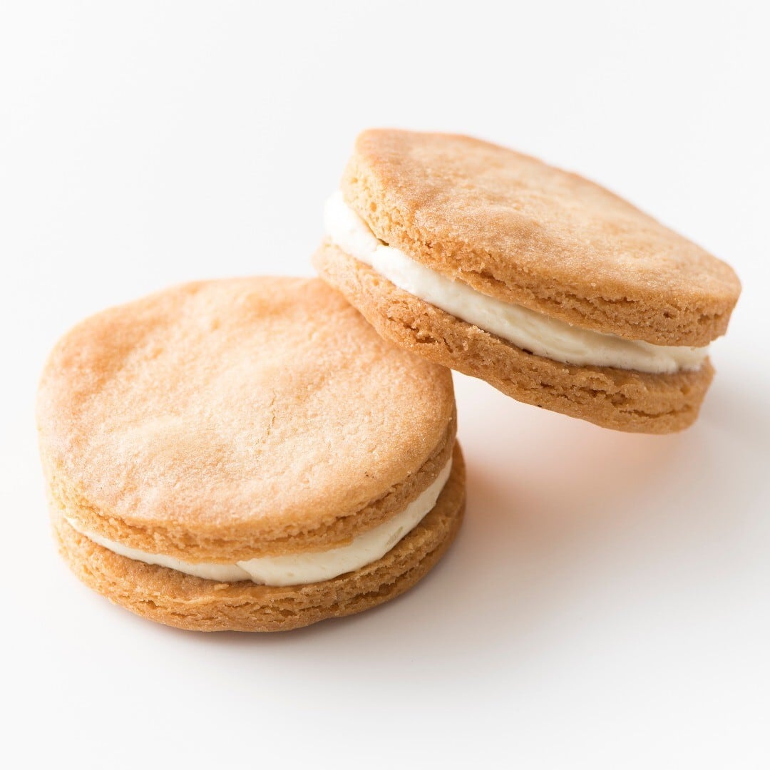 サクサク食べ応え抜群のクッキー生地に、りんごバタークリームをたっぷり挟んだバターサンドです。そのまま食べるのはもちろん、冷やして食べるのもおすすめです。